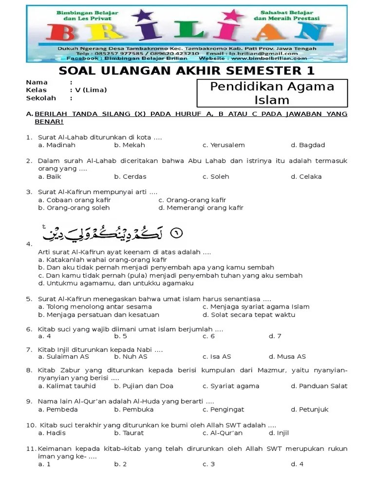 Soal Pai Kelas 5 Pelajaran 9 : Soal Uas Pai Kelas 5 Sd Semester 1 Ganjil Dan Kunci Jawaban Pdf - Khalifah umar bin khattab r.a.. Abu bakar di ba'iat e jadi khalifah pada tahu. Bank soal smp ulangan harianutsuas dan un kelas 78 dan 9 format words. Wb silahkan melakuan penilaian untuk kelas 5 pembelajaran 9 : Kunci jawaban pai kelas 5 pelajaran 9 halaman 79 80 buku . Kisi kisi soal pai kls 2.